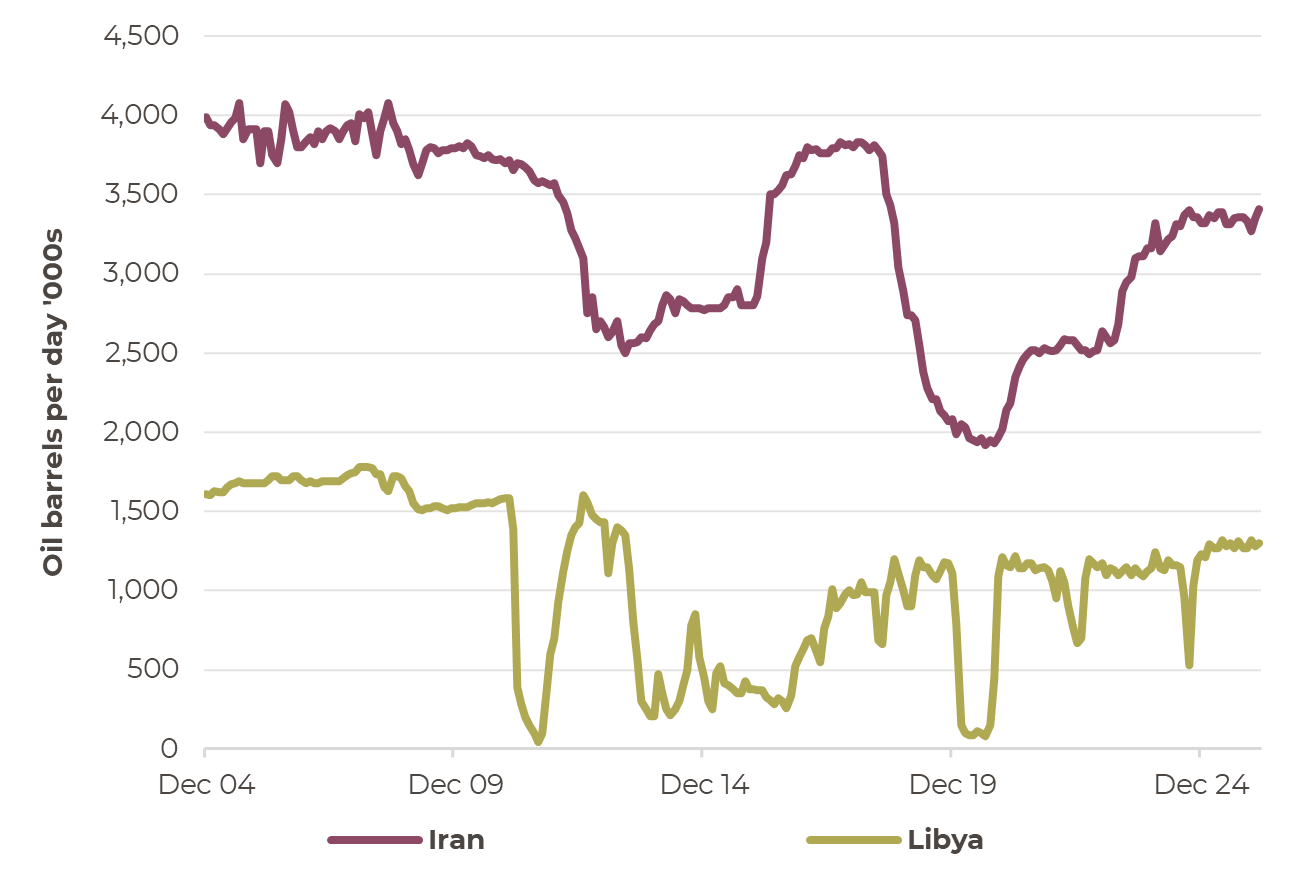 There are scenarios that see a de-escalation of tensions, a fall in the oil price and a resumption of the global economic recovery, albeit a recovery that is likely to have stalled given the war. Each day that military threat restricts the flow of oil in the Strait of Hormuz and oil prices remain elevated and volatile, the risk builds of an economic slowdown. A downside scenario could result in a collapse of Iranian oil production, in the same way that Libyan oil production fell during the civil war, following the UK and France’s intervention (post the passing of the UN Security Council Resolution 1973). Iranian oil production is an important source of global energy and it would be a challenge to replace it over a prolonged period, which may give way to elevated oil prices.