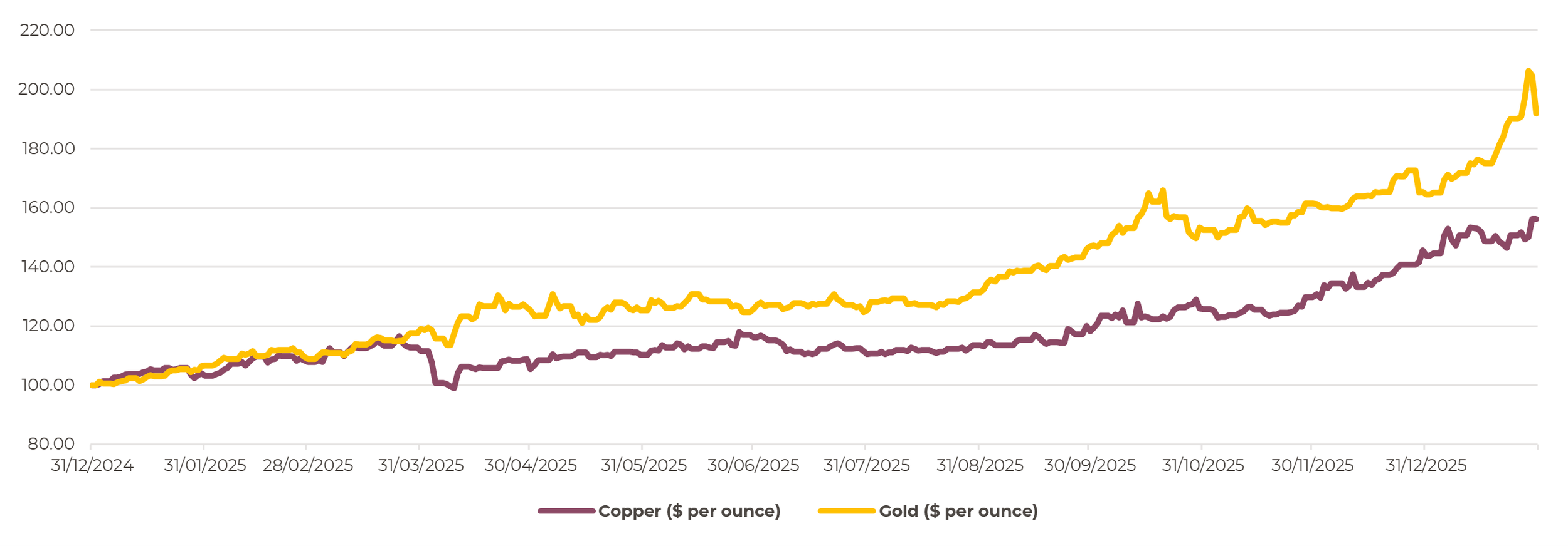 The move in gold prices has vastly outstripped the gains in copper