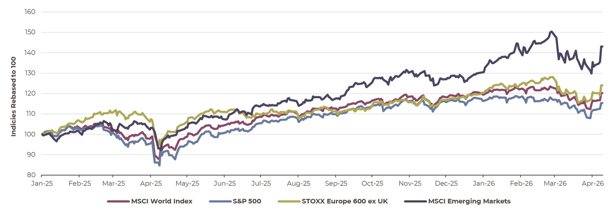 What has been particularly interesting, and perhaps somewhat disconcerting, is the financial market reaction to the US-Iran conflict. In broad terms, equity markets have remained relatively resilient since the start of the conflict, especially given the scale of the energy shock and its potential ramifications. While all equity markets responded positively to the ceasefire, emerging markets recorded the strongest rebound, which is understandable given their greater reliance on energy imports. Notably, equity prices have not yet returned to pre-war levels.