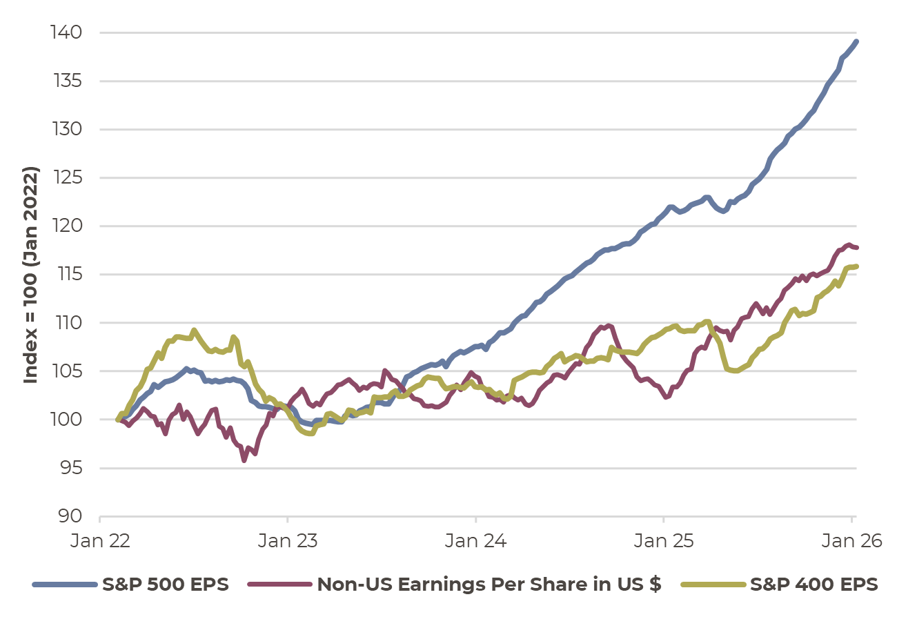 US mid-cap and non-US earnings per share (EPS) are picking up, supporting an improvement in performance