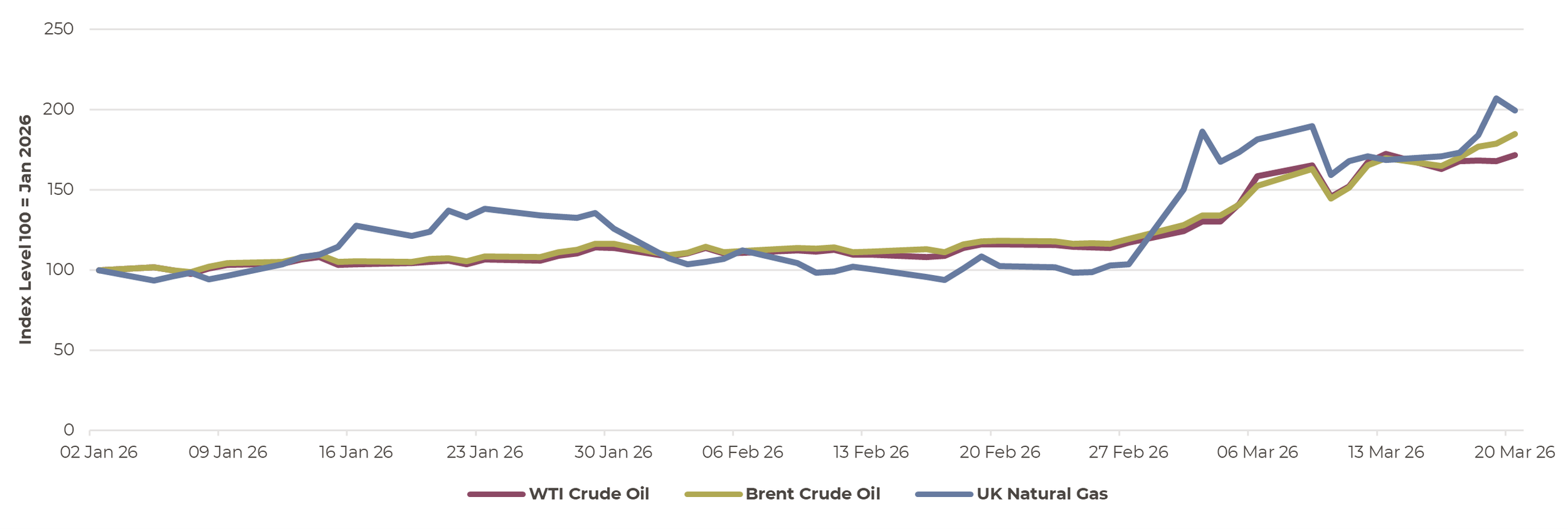 In contrast, the sharper recent rise in UK natural gas reflects Europe’s acute dependence on imported LNG, a significant portion of which transits the same chokepoint; disruptions have already driven gas prices sharply higher due to immediate supply concerns and limited short-term substitutes.