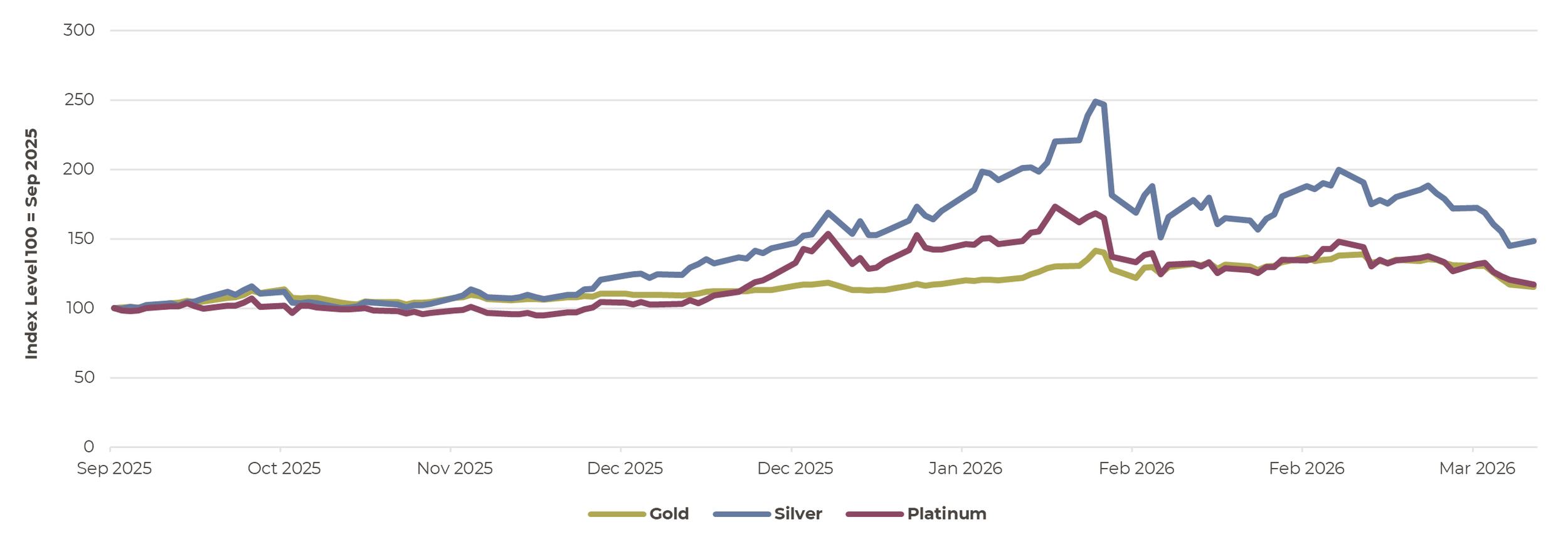 Over recent months, investors had increasingly crowded into precious metals, driven by lingering concerns about inflation, government deficits and broader geopolitical uncertainty. During the crisis, investors have taken profits on gold positions and as speculative investors sell their positions prices have fallen sharply.